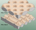 yarns of nylon, which allow excess mixing water to pass while retaining